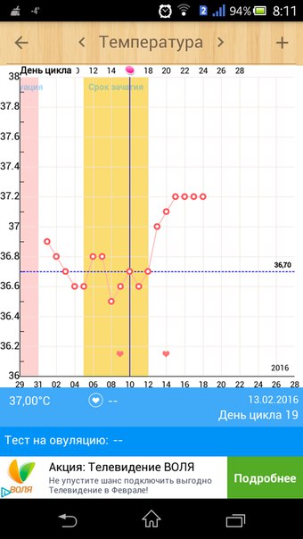 У меня такой календарь постоянно ошибается, хоть ставлю что О положительная, что не ставлю. Мне кажется овуляция была на 18 ДЦ
