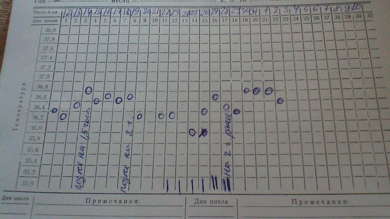 Высокие температуры на 4 и 8 дц - из за того что позже измеряли, от этих температур отнять надо 0.2, и получите реальные. Овуляция похоже что на 14 дц. Вы бы воспользовались местной программой, она разницу фаз считает. Но так если самой посчитать, то средняя БТ первой фазы 36.35, а средняя БТ второй фазы 36,55 (на 17 дц реальная температура на на 0.2 больше). Пока получается разница фаз маленькая, всего 0.2. Но вторая фаза ещё идёт, если есть беременность, БТ должна еще подняться.