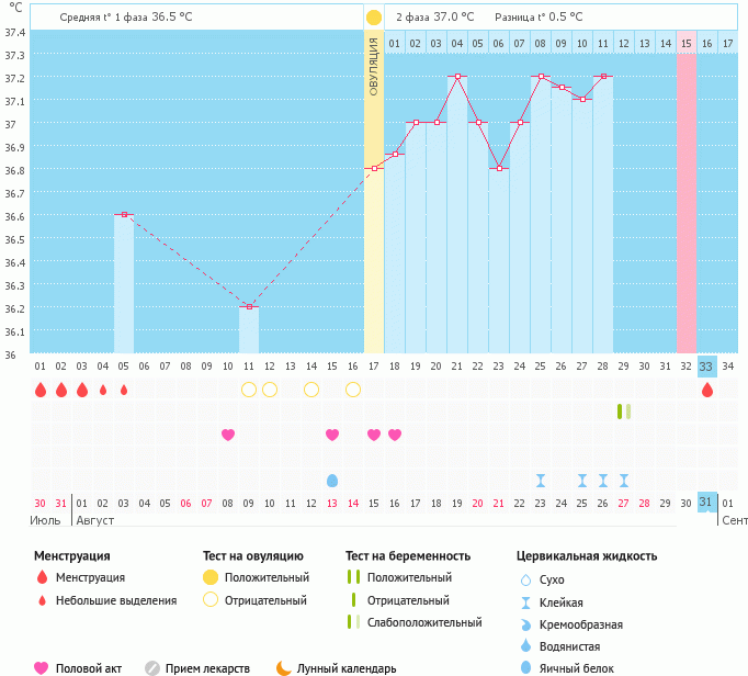 Что будет? Мой график базальной t°, цикл от 6 августа 2016
