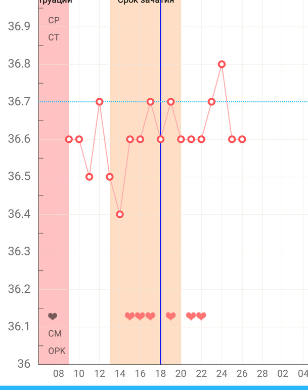 Беременность, признаки по БТ, есть ли шанс?Посмотрите пожалуйста мой график.
