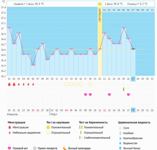 Вопросы и проблемы во ВТОРОЙ фазеПривет) я новенькая. В прошлом месяце был вроде такой хороший цикл только закончился раньше времени из-за смены климатических зон, а в этом месяце скачки температуры и низкая Т во 2й фазе хотя, судя по ощущениям и симптомам, овуляция была, но тестами я ее не поймала, на одном из тестов была яркая полоска но не такая яркая как контрольная.. неужели ановуляторный цикл?! так хочется лялю..