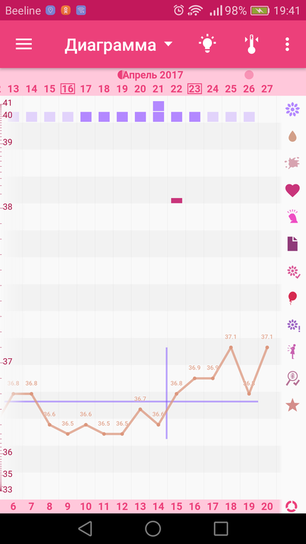 Беременность, признаки по БТ, есть ли шанс?В ИЗ не верю, т.к. у мужа бесплодие и мы даже делали ЭКО в январе, но беременность замерла😢 В этом цикле была гистероскопия с выскабливанием, эндометрий на 20-й ДМЦ всего-то 6,7 мм, но О была - в ЛЯ ЖТ 13 мм. В беременном цикле (после ЭКО) было и ИЗ, и имплантационное кровотечение даже.. График под кат