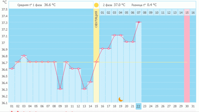 График отличный! Для тестов еще рано, так что все у вас впереди (а вообще сейчас очень часто тесты реагентят и иногда хорошо видна вторая полоска). А температура это обычное дело для второй фазы, все хорошо у вас. Удачи!!!