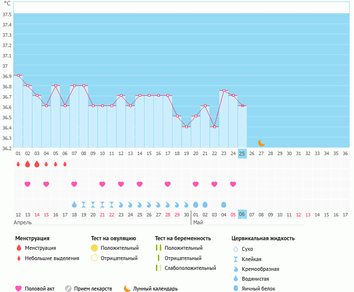 Мой график базальной t°, цикл от 12 апреля 2018