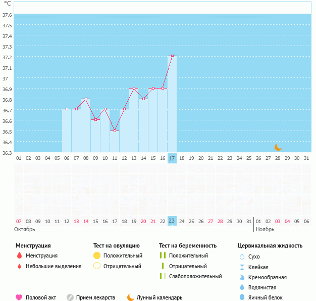 Да не обязательно у всех этот скачек. Чтоб точно понимать свою О нужны измерения на протяжении 3х циклов. У меня всегда разница между фазами 0,3. И БТ начинает повышаться только через 3 дня после О, это не раз доказано УЗИ.