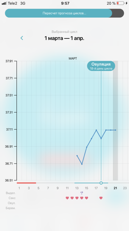 Мало измерений в первую фазу цикла, поэтому и выставила программа неправильно, скорее всего О на 14 дц. Удачи!🙏🤰🌸
