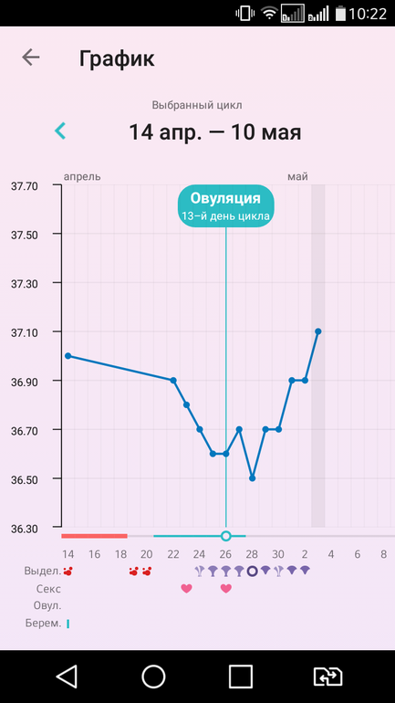 По ощущениям о была 13-14 дц( цикл примерно 24-25 дней,наблюдала 4 цикла),график пишет О была на 13 день,а по графику резкий скачок только сегодня утром! Вчера очень тянуло низ живота,увеличилас ЦЖ и в ПЯ покалывания,как иголочкой....вообщем,я размечталась,что это имплантация.....но почему тогда бт так резко поднялась.....