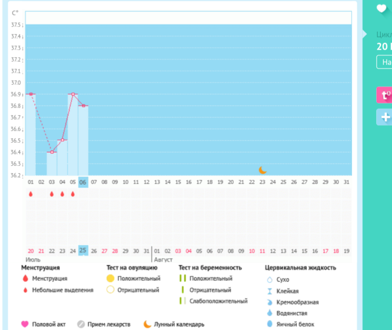 Вопросы и проблемы в ПЕРВОЙ фазеЗдравствуйте. 20 июня нежданно пришли месячные темного цвета, совсем не обильные. Это был 12 дпо по предыдущему циклу. БТ обычно падает перед М, в этот раз нет. В последующие дни прям мазало совсем мало. БТ вроде упала, но всего лишь на 2 дня и вот опять она высокая (в первой фазе обычно 36,4-36,6).