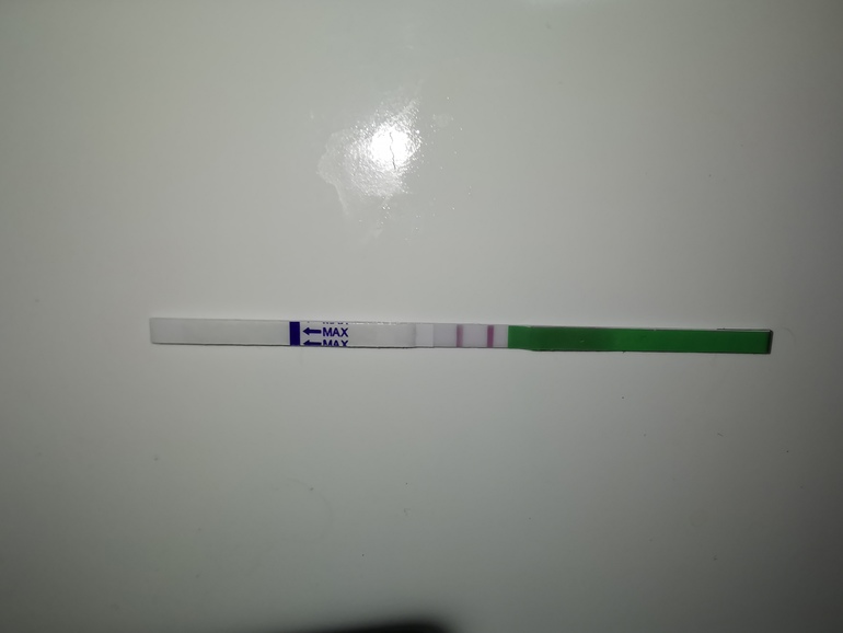 На 14ДЦ я сделала с самого утра тест и вторая полоска проявилась СРАЗУ. Тоже не доходила до положительного, но точно была ярче чем на 13ДЦ. Вечером повторила. А она прям красная. И я поняла, что это она. Решила отметить ее в графике.