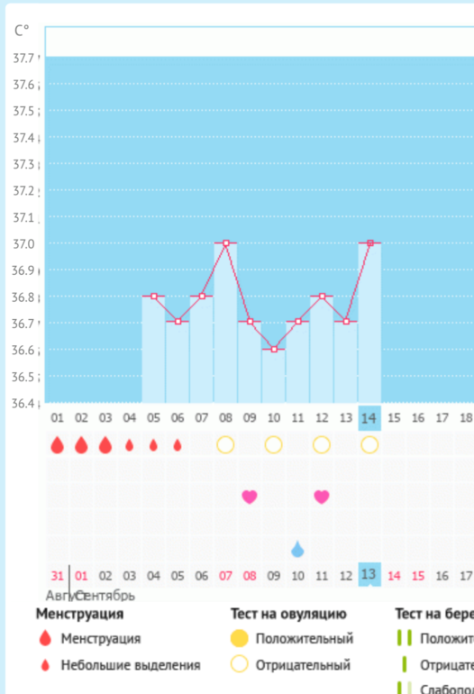 Беременность, признаки по БТ, есть ли шанс?Подскажите что происходит с бт? Позавчера делала тест на овуляцию, вторая полоска была яркая, но менее яркая чем контрольная. Сегодня сделала полоску вообще еле видно, а бт подскочила, ну и 14 дц как бы...пора..