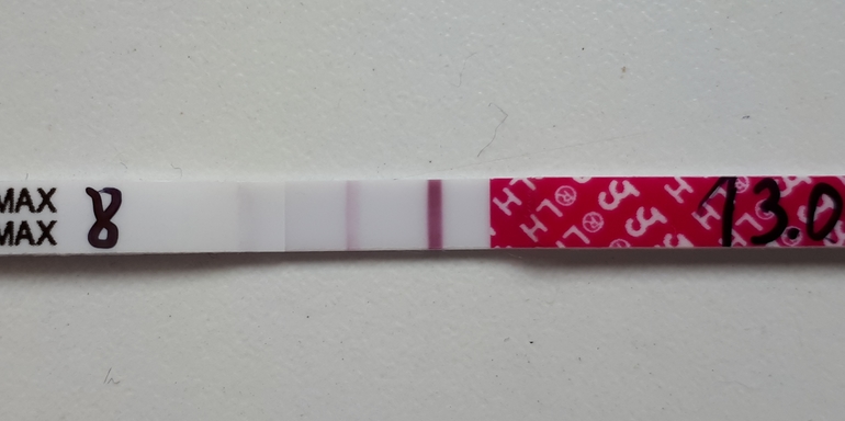 Причём на 5 дц в крови ещё хгч 5, а в районе 11 дц у меня начался вроде как ЯБ. На 12-13 не было возможности делать тесты, тк мы уезжали в горы. И вот мы приезжаем, я делаю тест, а он какой-то вроде ярче, чем просто тест, и то ли овуляция была уже, то ли что 🤦🏼♀️ Но с одной стороны, чувствую, что не было, с другой стороны, они начали бледнеть 😂 На 18 дц я плюнула на это дело, но на 20 дц снова сделала тест, потому что снова начался ЯБ. Короче, было ощущение, как будто она собиралась пораньше быть, а потом чет раздумала, и в итоге ЯБ был два раза по 4 дня, и такой вот "всплеск" виден.