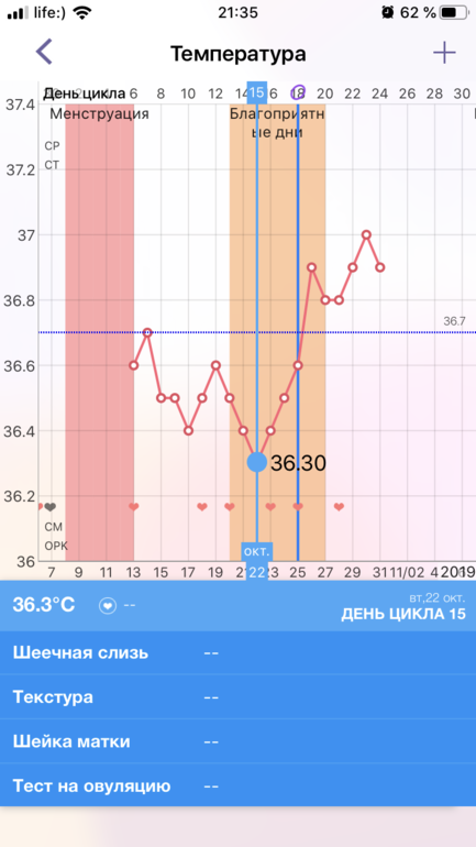 Спасибо за ответ)Меня просто смущает самая низкая температура на 15 день цикла,вот и запуталась...