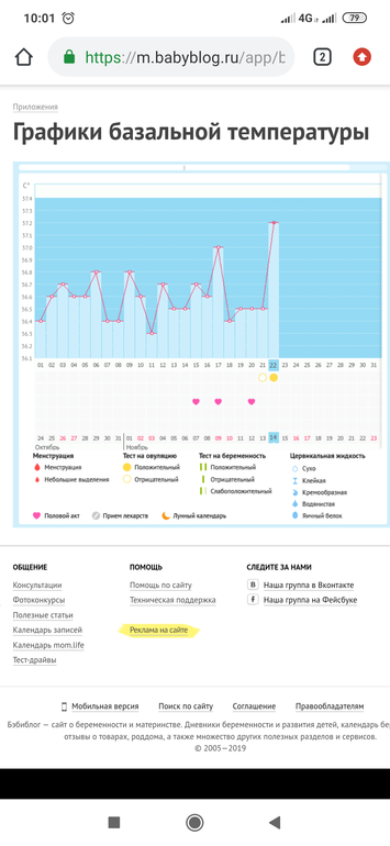 Мой график базальной t°, цикл от 24 октября 2019