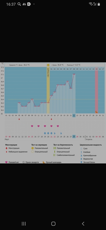 У меня были графики не Б с западениями и Б с двумя скачками, на 5 и 7 ДПО, так что это не показательно. Главное чтоб дальше держалась выше 37