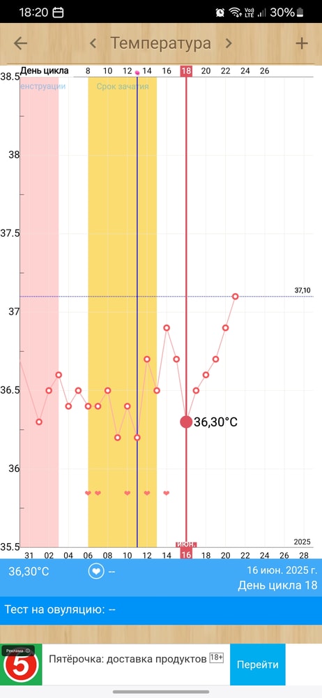 Девочки, доброго времени, подскажите🙃Веду график 2й месяц, в прошлом месяце делала узи на 7 ДЦ и домин фоликул был и график хороший был, но не вышло, в этом цикле такая картина, грешить на гормоны, просто западение или похоже на ИЗ? Планирую после ЗБ уже 4й месяц, с ума можно сойти, пыталась этот месяц не думать, но этот график 5й день не даёт покоя