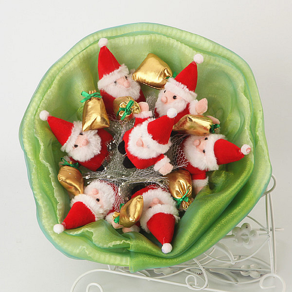 Букеты из игрушек с Санта-клаусами,снеговиками или овечками (символ 2015 года) с бесплатной доставкой по г.Саратов