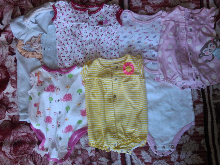 Одежда для девочекПродам 6 боди и 1 песочник ( с тигром). Подойдёт от 0 до 3-х месяцев. Вещи фирменные, красивые, качественно сшиты, в очень хорошем состоянии. Для настоящей модницы. Одели всё по 1-2 раза. Отдам в подарок шапочки и носочки. Цена за всё - 500 рублей. БЕЗ ТОРГА! Район "Улешей".