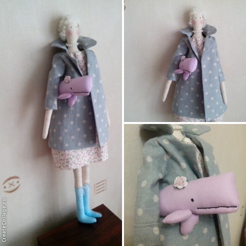 Тильда в морском стиле с кашалотом подмышкой. Высота 40 см, с подставкой 42. Цена 1200 руб., без подставки 1000 руб.