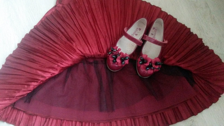 Одежда для девочекНереально красивый комплект, платье Sweet Berry, р-р 98 (можно и до 104), туфли Котофей, р-р 27, указано 17 см стелька, но по факту на стопу 16,16,5 см. Идеально сочетаются по цвету. В состоянии новых вещей - надевали только на елку и фотосессию в помещении. 2000р.