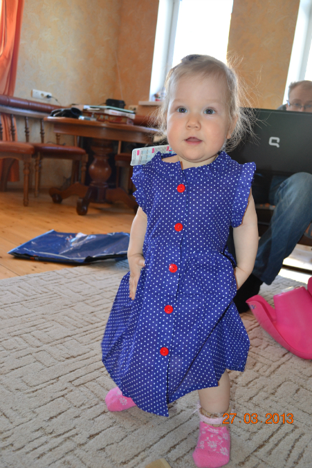 Ого! Ко мне такое же платье едет.. Значит сильно большое пока((( мы 75 см. А костюм вообще 90 едет.... Над комбезом думаю пока.. Как считаете сильно вам ваш комплект велик?!