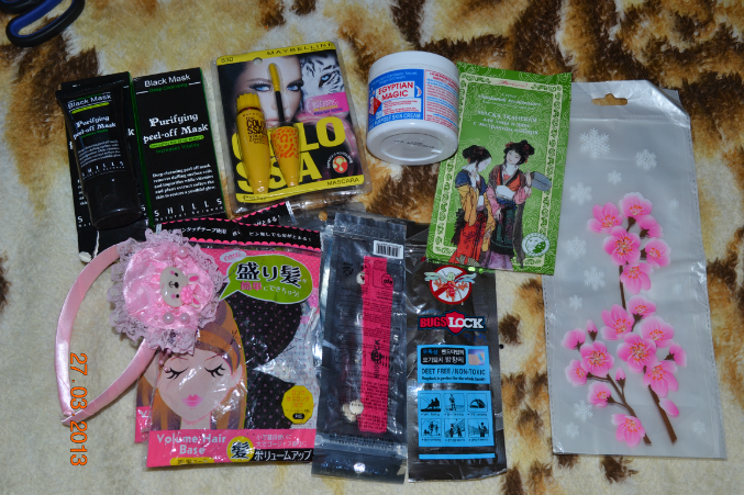 крем от черных точек, тушь (мне не понравилась), крем египетский, заколки, ваза, браслеты от комаров и подарочки от Ани, спасибо большое.