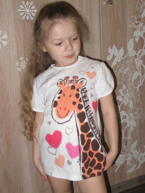 Кофточка жираф))качество отличное нам как раз размер брала 6Т в реальности смотриться гораздо лучше чем получилось на фото)))