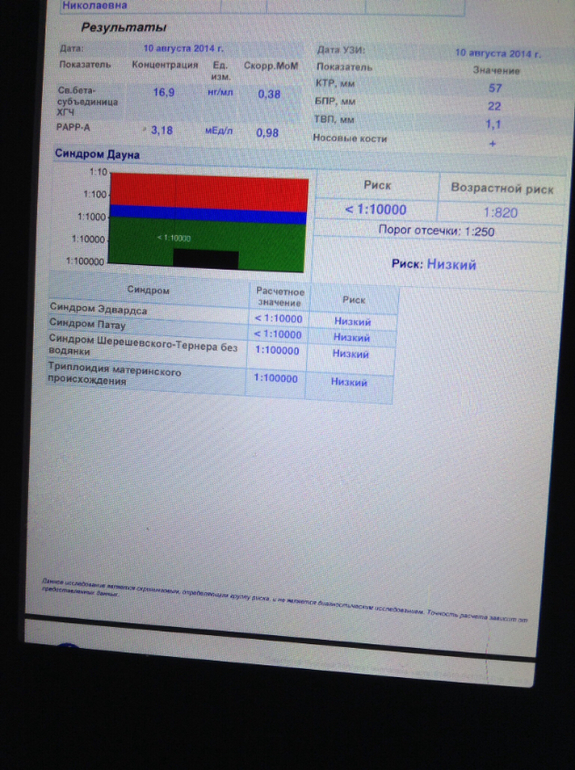 Спасибо! Блин, мне только что из цира позвонили, сказали что у меня все хорошо , все риски низкие, но......свободный б- хгч чуть ниже нормы, проконсультироваться со своим врачем, что это значит?????а аааа у меня врач из ЖК )))).