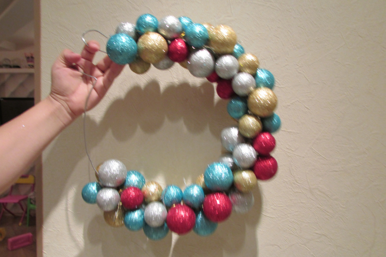 Наших 68 шариков хватило не на все кольцо из вешалки, , и решили диаметр сократить ;)