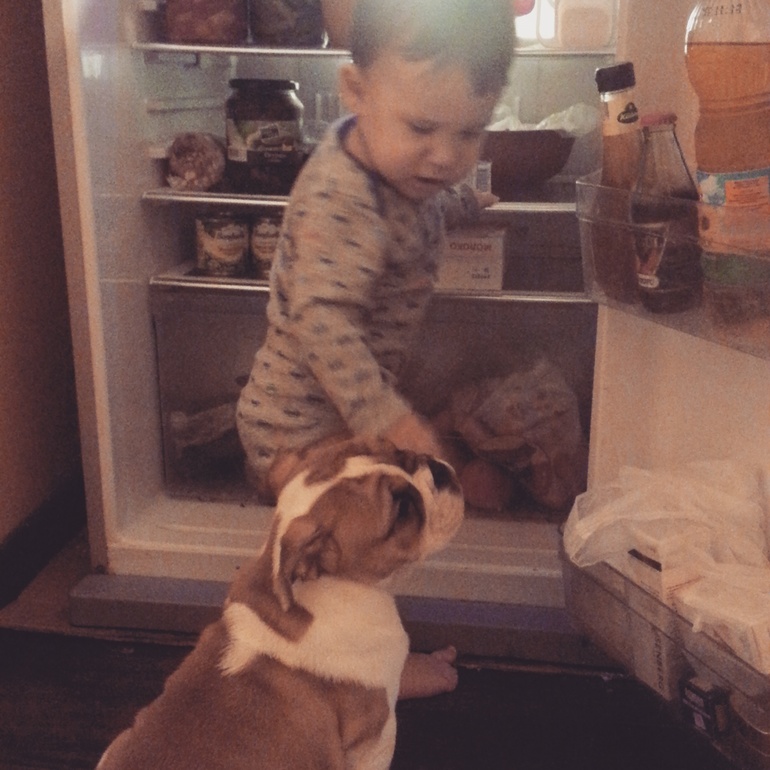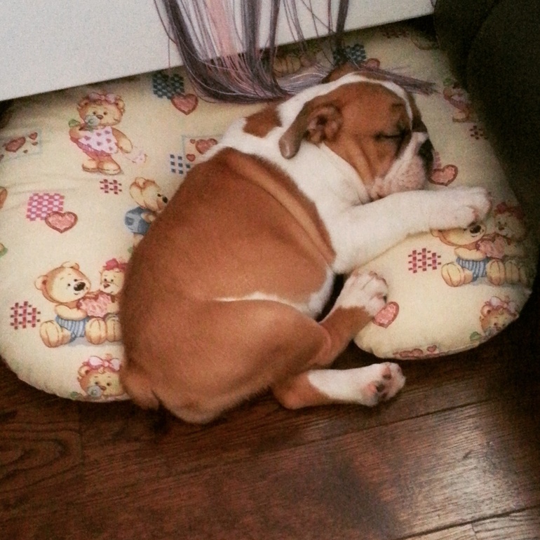 Наши детки-конфетки ( развитие, радости, трудности и т.д )У нас 8 зубов!))); не ходит пока но уже пытается встать без опоры, говорит всякие странные слоги и особенно куль-куль-куль и гагн-гагн гортанно так! Научился делать языком цок цок! Мы взяли английского бульдога домой щенка ! Буду разводить, девочка итальянского происхождения, первая выставка в июле! Кому щенков? Будут через 1.5-2года! Это чудо! Они играют вместе, Платон ее тягает а ей в кайф! Вот пара фоточек