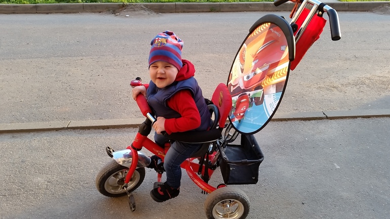 Лен, а у тебя Матвейка сам велосипед крутит? А зеркало сзади .....