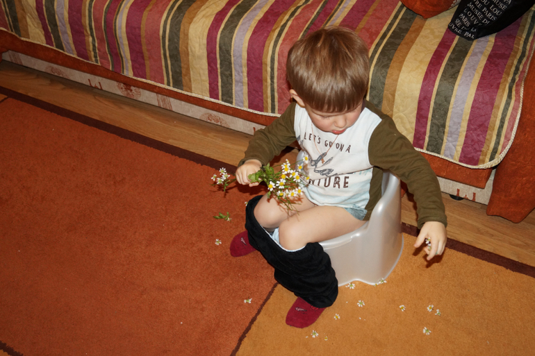 Очень много ролевых игр: в магазин, автосервис, доктора. Или сам притворяется Тишкой (котиком) и шкодит. Вообще мне стало значительно легче с ним. Наконец я реально могу совмещать и дневные дела и его активность. Ему стало нравиться помогать вешать белье, мыть посуду, пылесосить, готовить что-то простое вместе. Раньше мы это тоже делали, но он быстро терял интерес к процессу. Сейчас мы уже меньше что-то читаем или сидим вместе. Игры стали быстрее и короче,но их стало больше. Поделки делаем разные, но надо угадывать настрой. Самостоятельность так и прет) Но очень избирательно. Кушает только вкусное сам, знает, что утром ему лень есть и его кормят)) Писаем мы в унитаз, поэтому сам только штаны стягивает, в остальном нужна помощь , иначе уписает весь туалет. Ходит по улице много где сам, научился, Слава Богу, давать руку, где нужно, но когда тяжело, то просится в коляску, если ее нет, то на руки. В общем, хитрит))