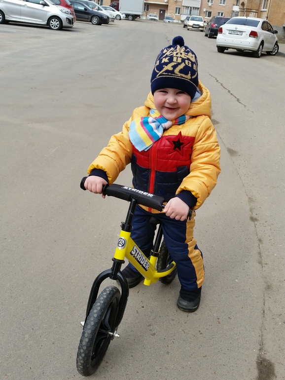 Взросляк :) Помню фото в ванной-пупс пухленький ☺ А тут уже такой парень на велеке