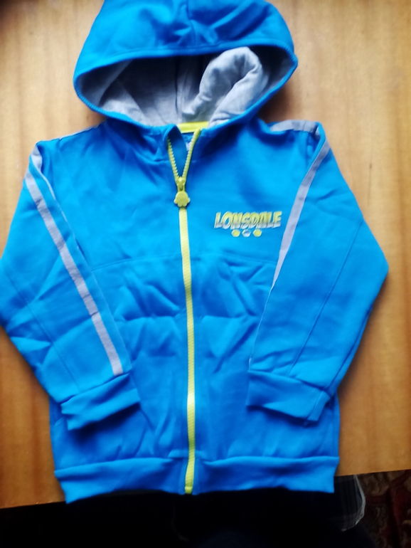 2. Пайта на молнии, новая, с капюшоном "Лонсдейл" Англия. на возраст 2-4 года, рост 98-104 см.Новая!!! Замеры: длина рукава 31 см, по груди 34 см, по спинке ширина 42 см. Цена 699 руб.