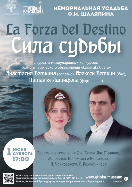Дорогие друзья,приглашаем в мемориальную усадьбу Ф.И. Шаляпина на Новинском бульваре! Можно по билету на концерт БЕСПЛАТНО посетить художественную выставку оригинальных работ."Разве малому научился я у художников" С 16.30 1 июня перед концертом доступна для посещения выставка "Разве малому научился я у художников" БЕСПЛАТНО.Вход по билету на концерт! На выставке представлены работы таких корифеев русского искусства, как Серов и Левитан, Репин и Коровин, братья Васнецовы, Врубель, Поленов, Головин, Кустодиев. Отдельный зал посвящен творчеству ставшего востребованным мэтром Бориса Шаляпина, работами которого его знаменитый отец по праву гордился. Также представлены редко экспонируемая графика и живопись из собрания Российского национального музея музыки при участии ГЦТМ имени А.А. Бахрушина. Билеты - http://glinka.museum/visitors/events/?SECTION_ID=3&PLACE_ID=2# 1 июня в 17.00 Опера «La Forza del Destino» («Сила судьбы»), давшая название вечеру вокальной музыки в первый день лета в усадьбе Ф.И. Шаляпина, занимает особое место и в творчестве Дж. Верди, и в истории вердиевских опер на русской сцене. Она была написана композитором специально для России и приобрела название «Петербургской оперы Дж. Верди». К тому времени композитор, будучи уже автором 21 оперы, пользовался мировой славой. В то же время понятия «судьба» и «сила судьбы» являются синонимами, с одной стороны, мистического предопределения жизненного пути человека, с другой стороны, - непостижимой предопределенности событий и поступков самого человека. Поэтому, в широком смысле этого понятия, судьбоносно всё, что происходит с человеком. Арии и сцены из оперы «Сила судьбы» Дж. Верди прозвучат в окружении арий и сцен из других опер композитора, а также из опер Дж. Пуччини и М. Глинки, романсов П. Чайковского, Н. Римского-Корсакова и С. Рахманинова. Их исполнят лауреаты международных конкурсов, солисты творческого объединения «Camerata Opera» Анастасия Веткина(сопрано) и Алексей Веткин (бас). Партию фортепиано исполнит Наталья Латифова. В сезоне 2018-2019 гг. «Camerata Opera» успешно сотрудничала с Чешским филармоническим оркестром. Новая концертная программа - "La Forza del Destino. Сила судьбы" - результат работы в Европе с известным оперным дирижером П. Валентовичем.