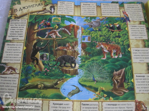 И последня книжка "Мир воркуг нас". Тоже интересная книга, но для деток 3-4 лет. Каждый равзорот посвящен не только животным фермы, леса, джунглей, полюсов и т.д.написаны интересные факты из жизни каждого животного . также здесь есть информация о том, что происходит в городе, в воздухе....