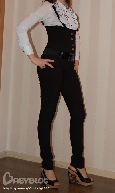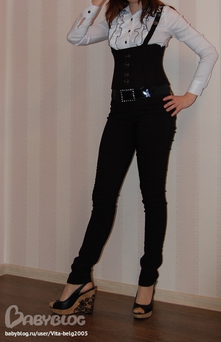 В общем, ткань легкая, на апрельскую весну уже наверное, хотя на 8 марта все-таки нацеплю, по размеру - корсет сел идеально (даже свадебное платье вспомнилось)))), то - что ниже великовато. Поэтому брючины собрались слегка гармошкой. Длина брюк - отлично.