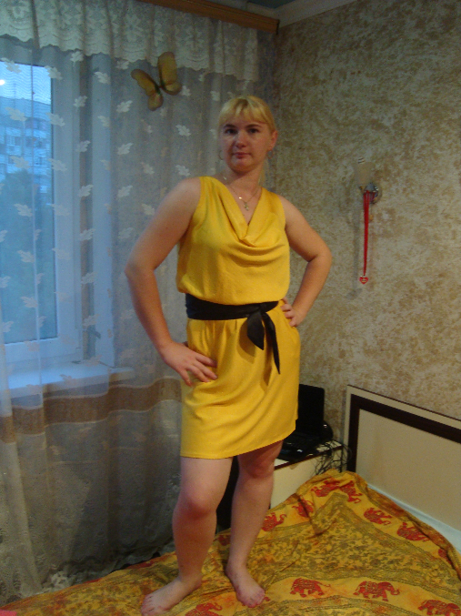Плюсы: легкая ткань, приятная к телу, интересный, но достаточно легки покрой. Поистине летнее платье для прогулки. Минусы: ну никак не смотрится без пояса.....И не все мои цацки-моцацки в виде бижутерии можно надеть за счет декольте)))))