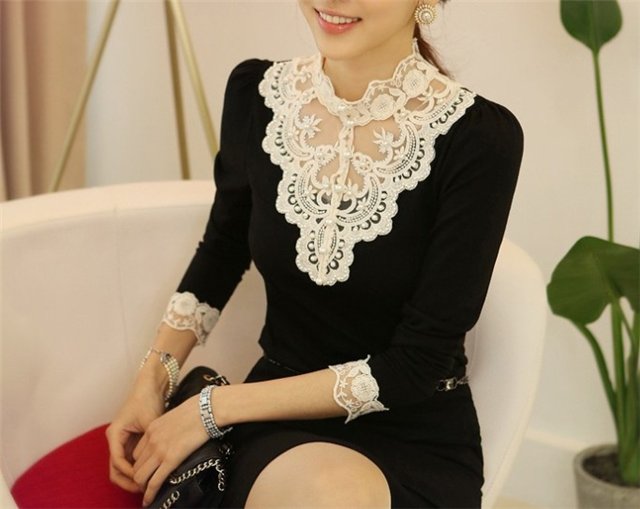 Блузка с Алиэкспресс, размер XL. Новая, но без этикетки. Ссылка на сайте: http://ru.aliexpress.com/item/New-2014-Lace-Patchwork-Women-Blouses-Stand-up-Collar-Winter-Spring-Women-Shirts-Plus-Size-Brand/1358601927.html?recommendVersion=2
