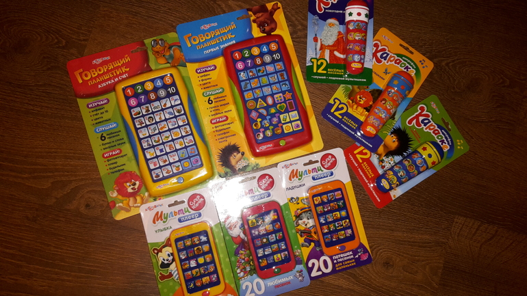 Надюш, как бы что хочешь)))) наборы песенок разные, есть повторяются некоторые, но все они зажигательные и добрые!чтобы петь, конечно, лучше микрофон. Минусовки там нет))))))))) там просто 4 кнопочки, на каждой по 3 песенки.Я взяла своим 2 микрофона, 1 смартфон и 1 планшет) Все как и хотели — "телефончик и планшетик", микрофоны от ДМ бонусом))))))))))))))))))))))