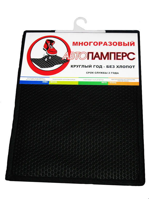 Влаговпитывающий автомобильный коврик «Автопамперс» - кладется под ноги вместо резинового коврика или на него. Сетчатой поверхностью - вверх. Он способен обеспечить чистоту и комфорт в машине в любое время года, особенно необходим в мокрую или снежную погоду.
