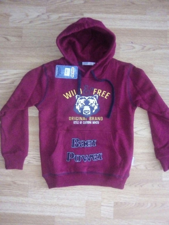 23, Толстовка BONITO kids новая 128 размер, с биркой, из очень плотной ткани "с начёсиком" внутри. цвет тёмно красный, как на 2 фото. (на первом фото какой то свекольный, извините, телефоно-камера)