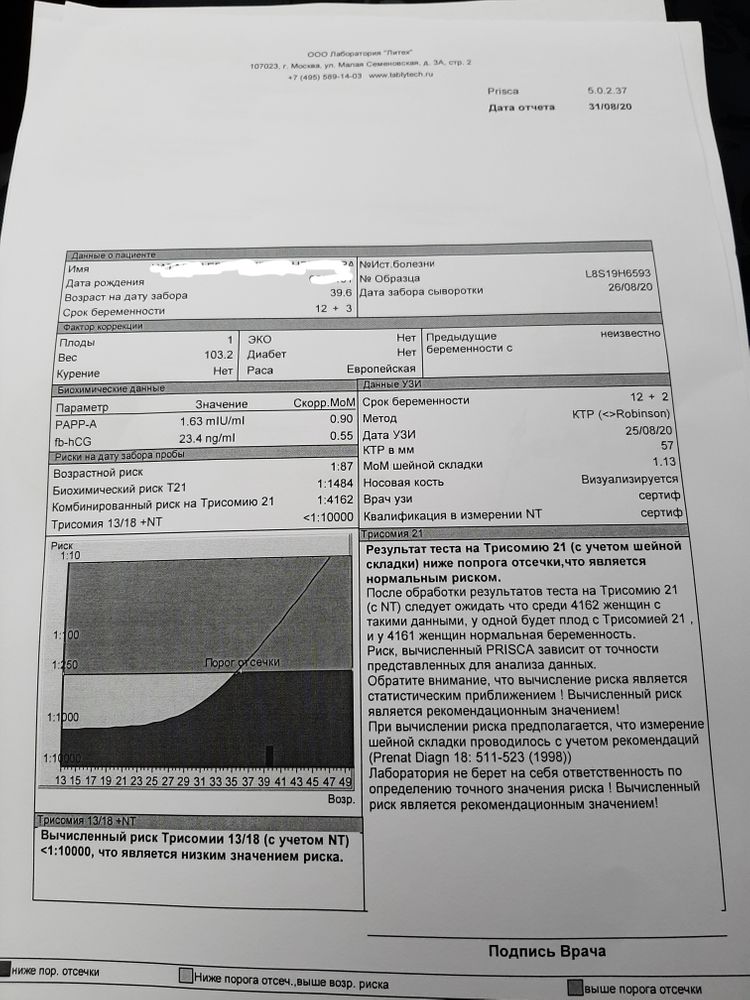 Вот и получила анализы скрининг, очень боялась, что отправят к генетику, так как возраст, а еще он у нас один, и с ней работает медсестра, к которой у меня очень негативное отношение, но врач сказала норма, гуляй до следующего. Вздахнула свободно. Фото прикрепляю.