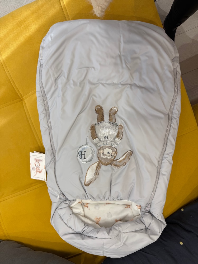 Вчера купила конверт на выписку и в коляску ))) выбрала всё-таки «наследников выжанинова», и в нем внутри такая нежная ткань с зайками , сразу захотелось из такой костюмчик (Астапа понесло 😂)