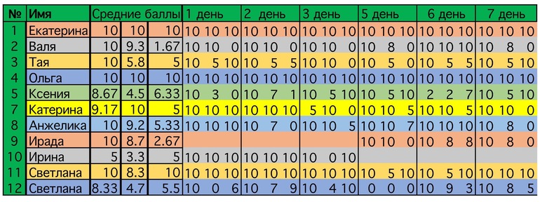 Девочки, умнички, сделала сводную таблицу. Смотрим на проделанную вами работу и не теряем темп