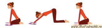Медленно проскользить на руках вперед. Спину держать прямой, колени не отрывать от пола.
