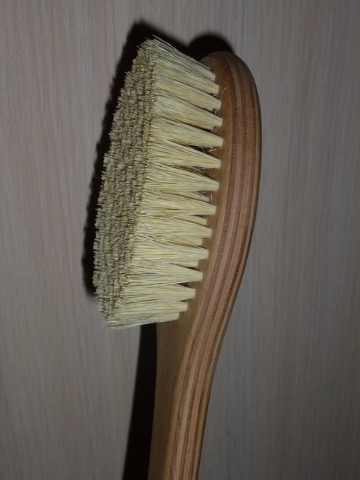 Там девушка рассказывает что супер средство от целлюлита это массаж натуральной щеткой по сухой коже. Вот приобрела я себе такую щетку. Поначалу не понимала ее. А когда пошла в зал, да еще купила себе пару средств серии Фитнес body, до меня дошло ее назначение.