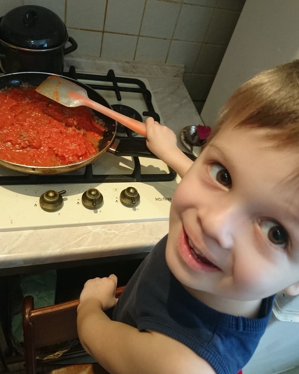 А еще Яру очень стало нравится готовить. Хоть раз в неделю готовим с ним какие-нибудь блюда. Он практически все делает сам, я только руковожу. Готовил уже пиццу, лазанью, фунчозу с креветками, овсяное печенье. Достала кулинарную книгу Джейми Оливера, Яр с интересом её рассматривает и выбирает, что мы будем готовить в следующий раз.