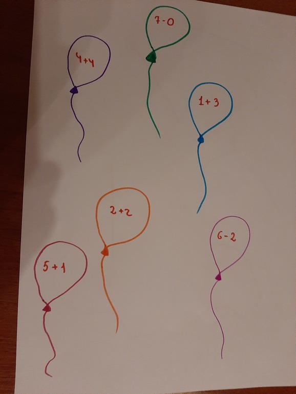 4. Рисуем воздушные шарики (конфеты, мячики, да, что угодно), внутри пишем примеры.