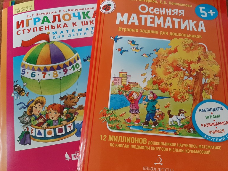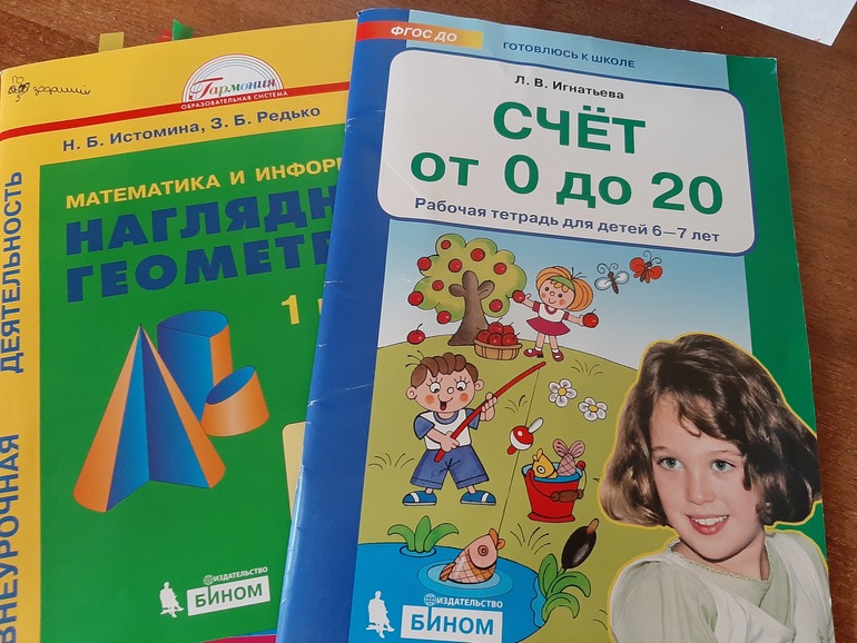 2. "Наглядная геометрия" Истоминой, "Счет от 0 до 20" Игнатьевой + пара заданий по игровой математике Жени Кац и настольные игры.