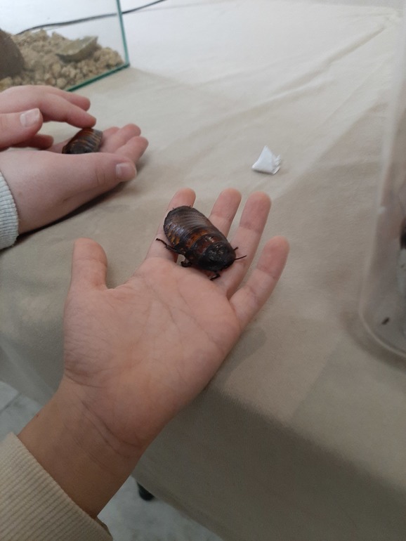 На цокольном этаже был небольшой уголок с живностью: змеи, ядовитые жабы, Мадагаскарские тараканы и палочники.